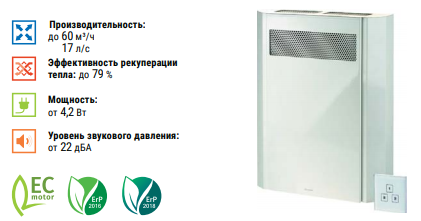 Приточно-вытяжная установка с рекуперацией тепла Blauberg Freshbox 60 для децентрализованной вентиляции. Оптимальная энергосберегающая вентиляция отдельных комнат в квартирах, частных домах, социальных и коммерческих помещениях. Обеспечивает регулируемый воздухообмен для создания индивидуального микроклимата.