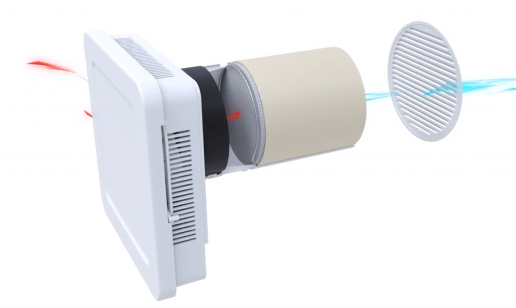 В основу работы Siegenia Aerotube положен процесс рекуперации. Теплый вытяжной воздух отдает тепло холодному входящему воздуху, тем самым подогревая его. Высокий коэффициент рекуперации до 90% позволяет минимизировать теплопотери.